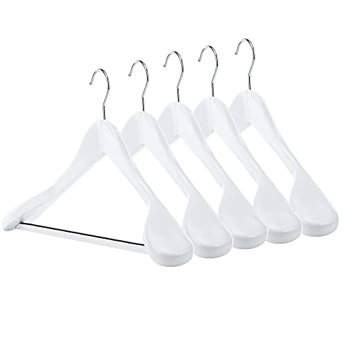 HANGERWORLD 5 Grucce 45cm in Legno Laccato Bianco con Spalline Larghe e Barra Porta Pantaloni Antiscivolo