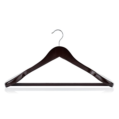 HANGERWORLD 5 Grucce 45cm in Legno Laccato Mogano con Spalline Larghe e Barra Porta Pantaloni Antiscivolo