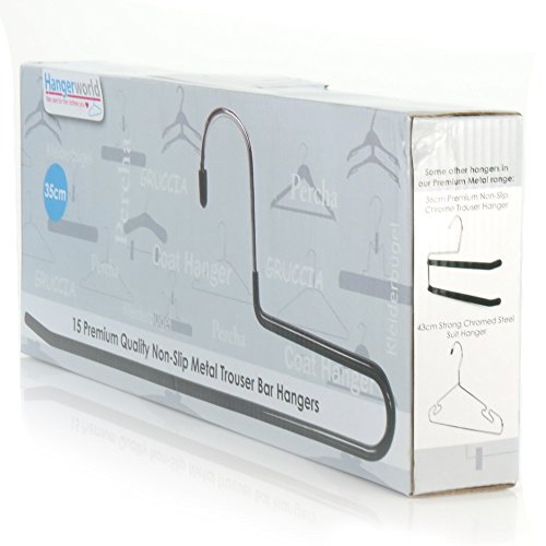 Hangerworld 15 Grucce per Pantaloni 35cm in Metallo Cromato Extra Strong con Rivestimento Antiscivolo Nero