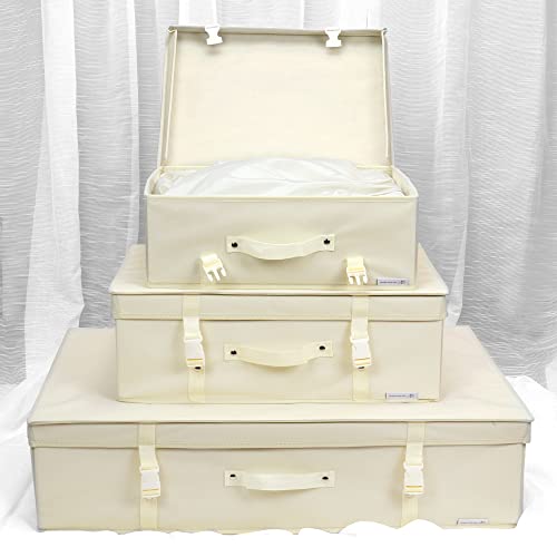 HANGERWORLD Scatola per Vestiti 35x55x20cm in Tessuto Traspirante Avorio con Coperchio per Abito Sposa
