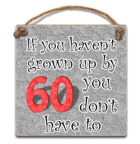 Hanging Plaque -If you haven't grown up by 60 you don't have to, Wooden 60th Birthday Gift for Men Women Dad Sister Brother Friend by HmHome