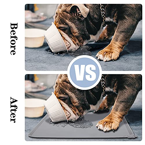 HANGOU Tappetino per Alimenti per Animali Domestici, Tappetino Antiscivolo per Cani Tappetino Impermeabile in Silicone a Forma di Zampa per Ciotole Snack con Bordo Rialzato (Grigio)