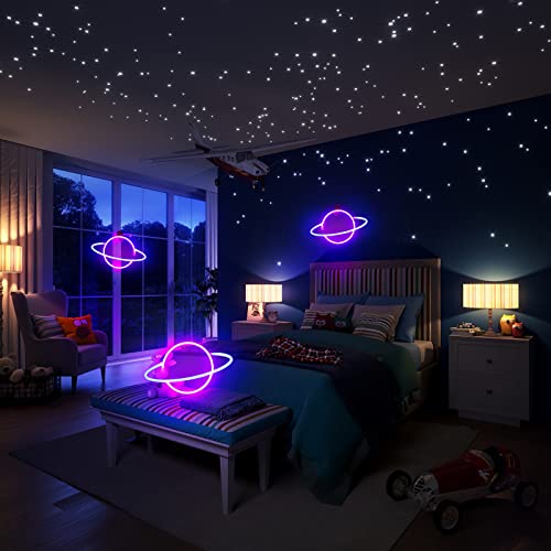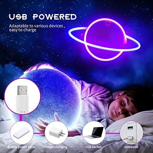 Hangrow Pianeta Luci Neon, Segni Led Insegne Al Neon Per Decorazioni Murali, Ricarica Usb/Batteria, Lampada Notte Planet Per Parete Della Stanza Festa Compleanno Decorazioni Per Matrimoni Bambini