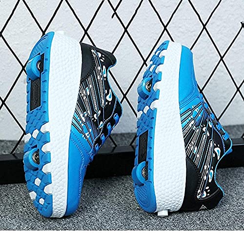 HANHJ Scarpe Skate Roller Scarpe Corsa Scarpe Sportive con Ruote Scarpe per Bambini con Ruote Scarpe Skateboard 2 Ruote Pattini Rotelle Ragazze Boys Rulli Scarpe Pully Scarpe,Blue-34
