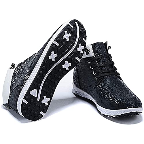 HANHJ VIIPOO Scarpe da Golf Impermeabili da Donna, Scarpe Sportive Alte da Esterno Antiscivolo Resistenti all'Usura, Scarpe Casual alla Moda, Un Regalo per Gli Anziani,Black-EU37