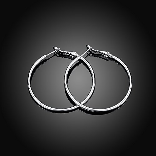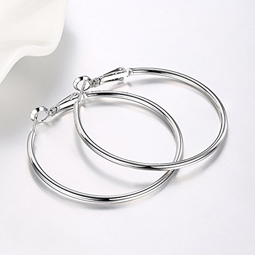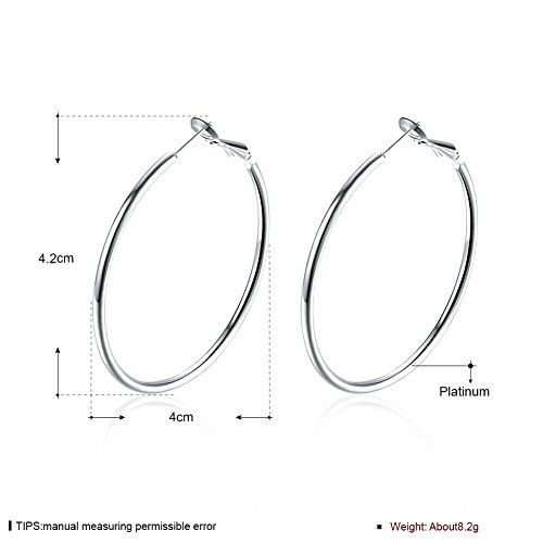 Hanie - Orecchini a cerchio da donna, in argento tonato con grande cerchio con diametro di 40 mm, senza zirconia cubica, placcati in oro bianco 18 carati, senza nichel, per donne e ragazze