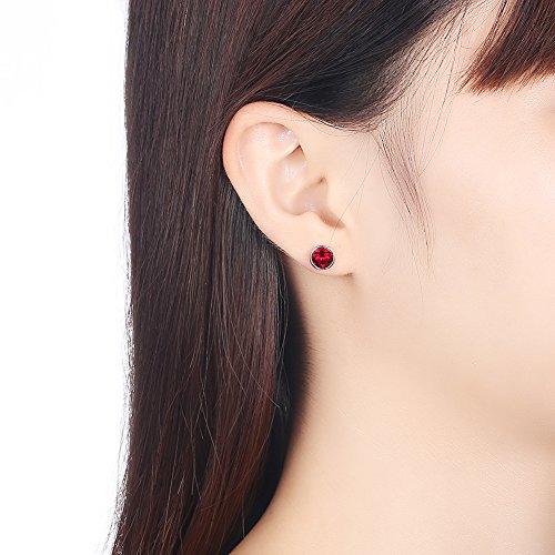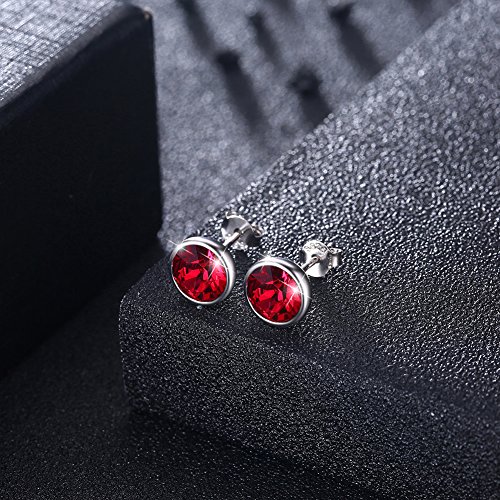 Hanie,Orecchini a perno da donna, in argento Sterling 925, con cristalli, 8 mm, rotondi, 8 colori, colore: Nero/Viola/Aurore Boreale/Blu/Rosa/Bianco/Verde/Rosso e Argento, colore: Rosso, cod. CED016h