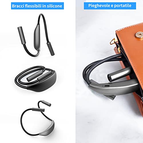 Bracci pieghevoli, leggera e portatile: questa luce per libri pesa 116 grammi e può essere facilmente appesa al collo ed essere indossata comodamente. I due bracci in silicone sono molto flessibili, ma abbastanza rigidi in modo da poterli adattare alle tue esigenze. È inoltre possibile piegare le braccia per renderlo adatto per il trasporto.