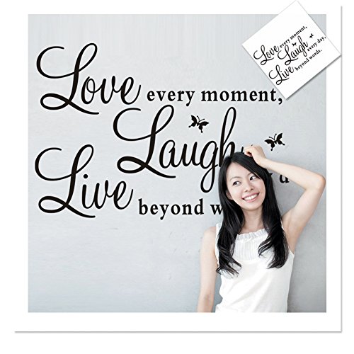 HANMERO Live Every Moment,Laugh Every Day, Love Beyond Words. Wall Quote Art Sticker Decal for Home Bedroom Decor Corp Office Wall Saying Mural Wallpaper Birthday Gift for Boys And Girls