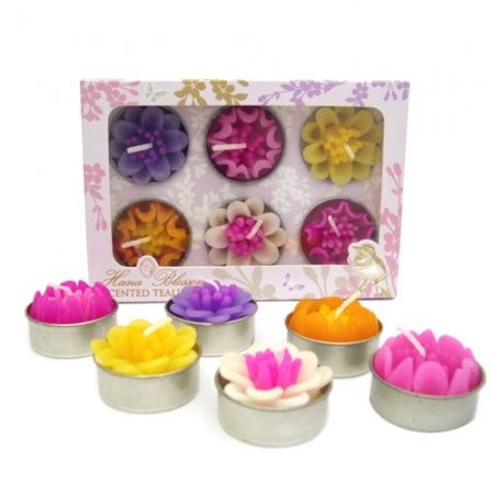 6 Handmade commercio equo-solidale profumato margherita pompon fiore candela tealight Set Regalo