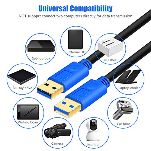 ⚡AMPIA COMPATIBILITÀ: il cavo da USB A a USB A collega una periferica USB con porta USB 3.0 di tipo A a un computer per un rapido trasferimento di file. È compatibile con laptop, pad di raffreddamento per laptop, Smart TV, USB in auto, lettore DVD, hub USB 3.0, monitor, fotocamera, Wacom, unità Blue-ray, set top box, custodia per disco rigido esterno da 2,5 pollici con porta di tipo A, e la maggior parte dei dischi rigidi esterni USB 3.0 con porta di tipo A.