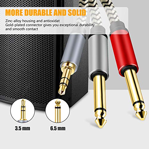 ⭐️CAVO DA 3.5MM MASCHIO 1/8 " A DOPPIO MASCHIO DA 6.35MM 1/4": Questo cavo audio professionale da 3,5 mm maschio a dual core da 6,35 mm può trasmettere segnali audio da lettori CD, computer, lettori MP3 e altri lettori da 3,5 mm agli altoparlanti e altri dispositivi