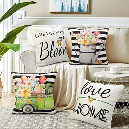Hanrunsi 45 x 45 cm Federe Cuscini Letto Fodera per Cuscini Esterno Impermeabile Strisce Decorative Impermeabile Fiore per Divano Balcone Terrazza Patio Giardino