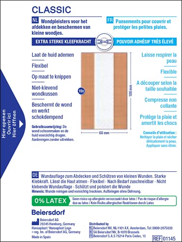 Hansaplast CLASSIC - 10 strisce da 10 cm x 6 cm, medicazione ipoallergenica altamente adesiva, confezione da 10 strisce di medicazioni, numero articolo: Hansaplast_5