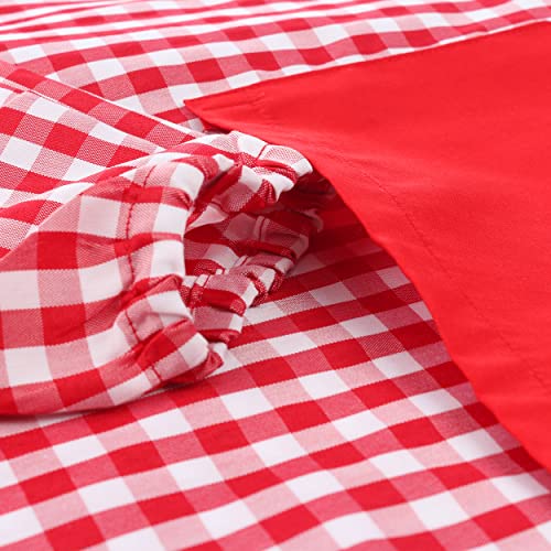 H HANSEL HOME Grembiule Scuola per Bambino, Grembiule per Scuola Materna Nessun Pulsante, Grembiule per Bambino Elastico su Polsino e Collo - Rosso 5-6 Anni