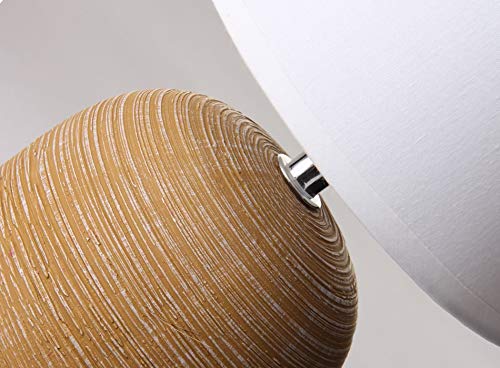 Lampada da comodino con base in ceramica, colore beige, ha un paralume bianco di tessuto misto TC con 65% poliestere e 35% cotone.