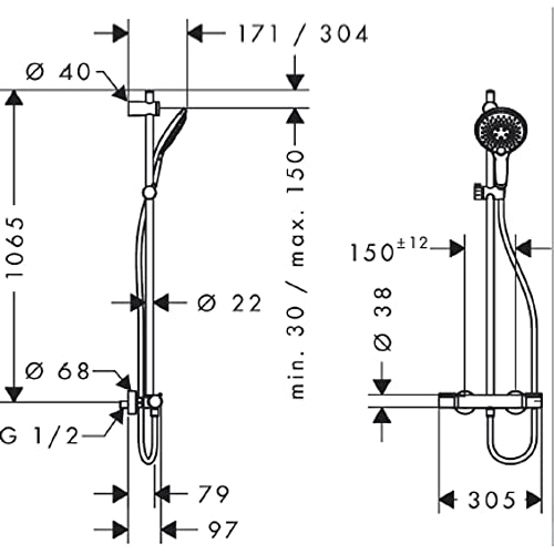 Hansgrohe Colonna per doccia semipipe myselect S 150 con miscelatore termostatico 27239000