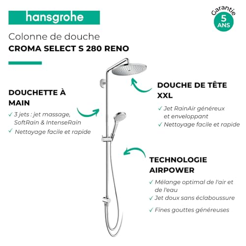 Hansgrohe Croma Select S Colonna doccia 280 1 getto Reno, cromo, 26793000