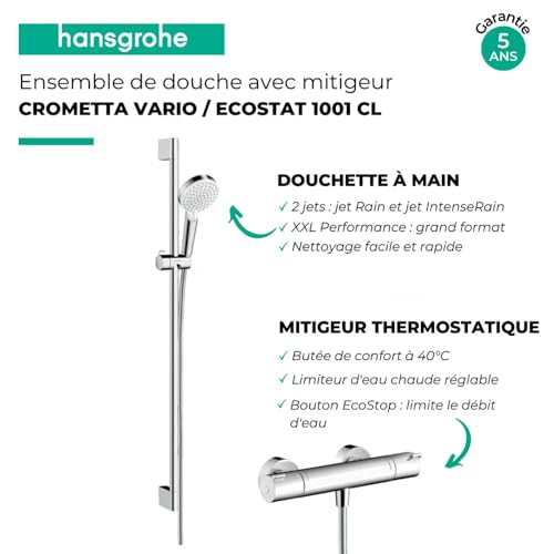 Hansgrohe Crometta Sistema doccia esterno Vario con termostatico Ecostat 1001 CL e asta doccia 90 cm, bianco/cromo, 27813400
