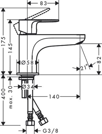 Montaggio facile: il miscelatore si collega ai raccordi acqua con dei flessibili di collegamento (G ⅜) (dimensioni: DN15