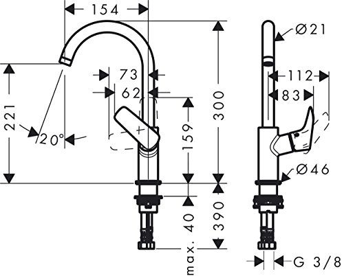 Facile da installare: la rubinetteria si installa sui raccordi dell'acqua (dimensione: DN15) tramite flessibili di collegamento (G ⅜)