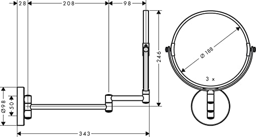 Funzionale ed elegante: Specchio per rasatura con montaggio a parete e ingrandimento 3x. Il diametro dello specchio è pari a 180 mm