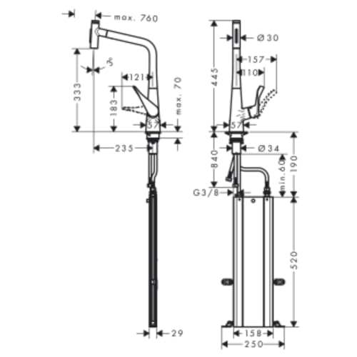 Maggiore libertà di movimento: grande distanza tra la bocca di erogazione e il lavello (ComfortZone 320);