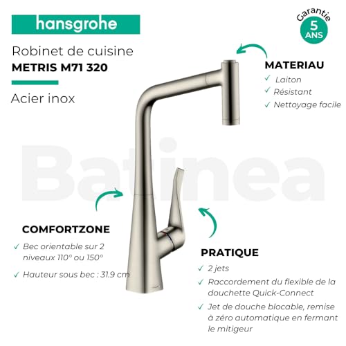 Hansgrohe Metris M71 Miscelatore cucina monocomando 320, doccetta estraibile, 2 getti, acciaio inox, 14820800