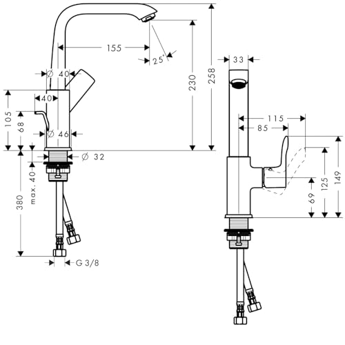 Facile da installare: la rubinetteria si installa sui raccordi dell'acqua (dimensione: DN15) tramite flessibili di collegamento (G ⅜)