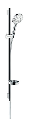 Hansgrohe Raindance Select S Set doccia 120 3 getti con asta doccia 90 cm e portasapone, bianco/cromo, 26631400