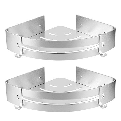 Hansiro Mensola angolare per doccia senza fori | Mensola per doccia con gancio in alluminio per bagno | 2 pezzi