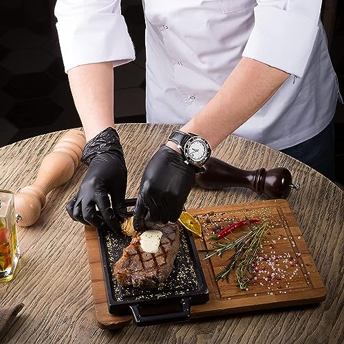 HANSKA 100 Guanti Monouso Nitrile Neri - Senza Polvere - Usa e Getta- Ambidestri - Non Sterili - Base di Gomma - Adatti per Ambiti Medici, Manipolazione degli Alimenti (100, L)