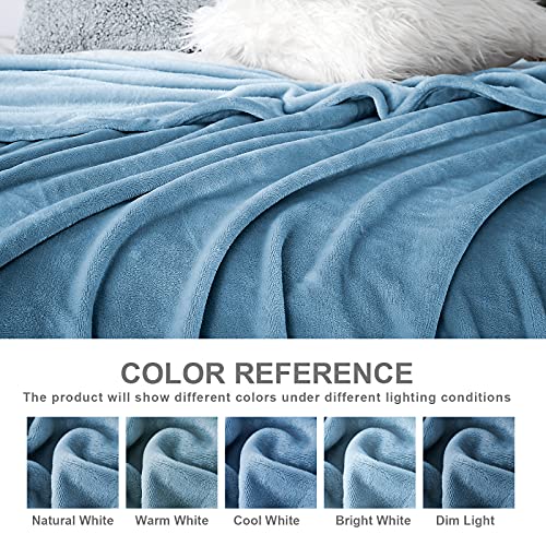 Hansleep Coperta Calda Plaid in pile di Flanella 130x165cm, Multifunzionale x Letto Singolo e Divano in Microfibra per Tutte le Stagioni Ultra Morbida & Comfort, Oeko-tex Blu Lavato
