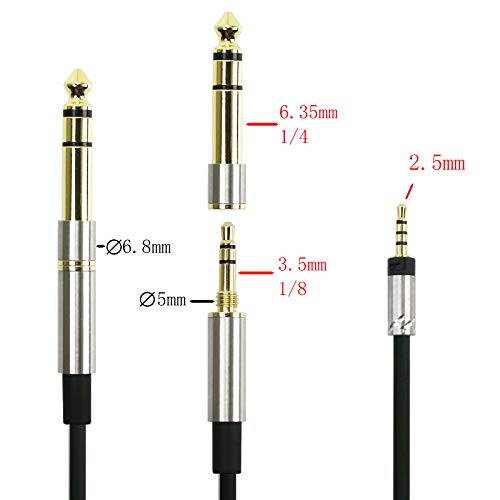 Lunghezza: 2 metri, colore: nero, connettore: maschio da 3,5 mm e adattatore da 6,35 mm a maschio da 2,5 mm, il jack da 2,5 mm viene fornito con connettore Twist-to-Lock che si adatta allo stesso cavo originale, il jack da 3,5 mm si adatta al telefono con la custodia più spessa.