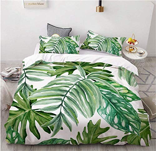 HANTAODG Set Lenzuola Matrimoniale 200x200cm Foglie di Piante Tropicali 3D Stampa Copripiumino e 2 Federe,Adatto e Bambini Adulti,con Cerniera Nascosta Microfibra
