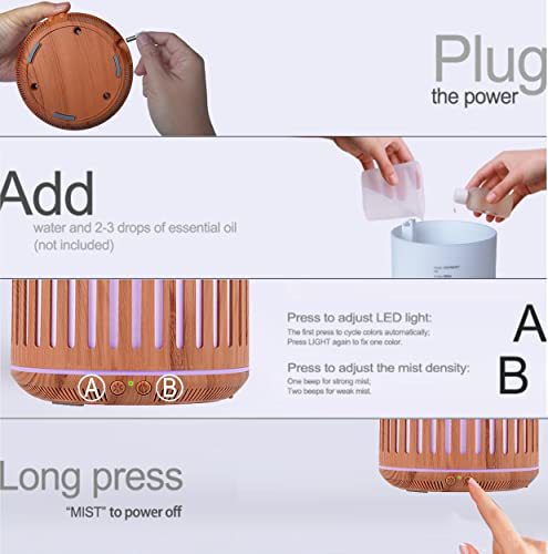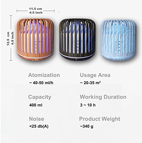 Hantoc Diffusore di Oli Essenziali 400ml, Umidificatore Ultrasuoni Diffusore di Aroma Diffusori Oli Profumati Nebulizzatore Silenzioso Automatico 7 Colori LED per Yoga Spa