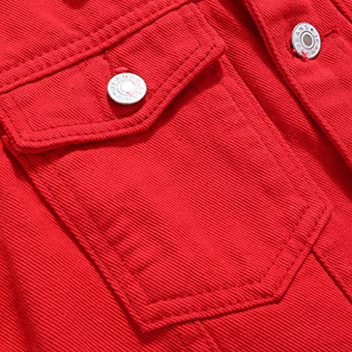 HANXIULIN Giubetto Jeans Giacca Casual Bottoni Denim Cardigan Donna Risvolto Solid Jeans Cappotto da donna Cappotto Viola (Red, XXL)