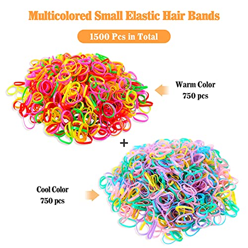 Hanyousheng Elastici Capelli, Elastici Capelli Piccoli, Mini Elastici Capelli, 1500 Pezzi Multicolore Elastici Piccoli per Treccine, Mini Elastici Gomma, Elastici Capelli per Bambina, Ragazze