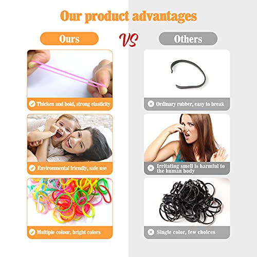 【Quantità abbondante】Il prodotto contiene 1500 colorati Elastici capelli, Includere 750 pezzi colori caramelle elastici capelli e 750 pezzi colore fluorescente elastici capelli composizione. Abbastanza per voi per diversi stili di capelli fai da te in un tempo lungo, abbastanza per soddisfare la vostra sostituzione e diverse esigenze nella vita quotidiana.