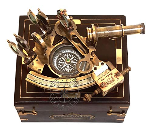 Hanzla Collection Antico sestante della nave d'ottone astrolabio con la bussola in scatola di legno duro