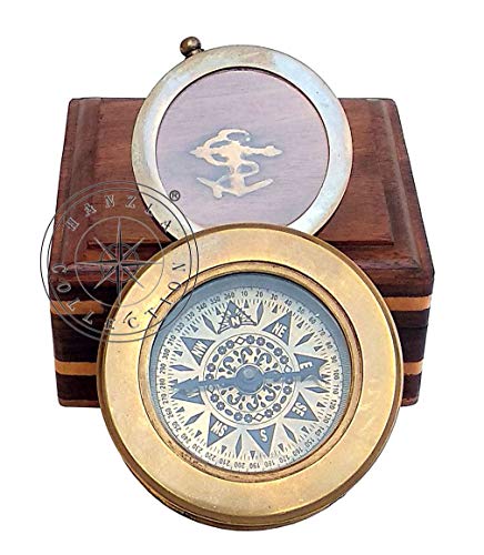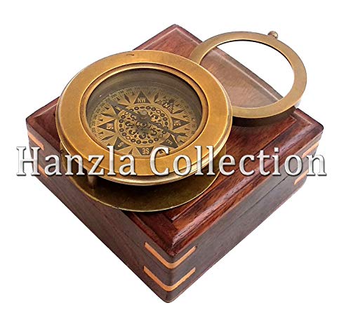 Hanzla Collection - Bussola tascabile in ottone con lente d'ingrandimento antica da 7,6 cm