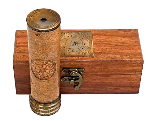 Hanzla Collection, caleidoscopio in pelle con cuciture in ottone antico, regalo per bambini, con scatola di legno