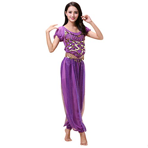 Haodasi - Costume da Danza del Ventre, da Donna, con Lanterna, Pantaloni Professionali Viola. S