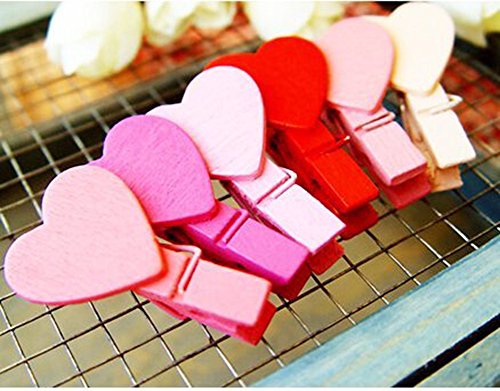 Haodou 12pcs a forma di cuore in legno clip sfumatura di colore rosa a forma di cuore in legno mollette da bucato mini legno mollette da bucato creativo decorativo legno clip Foto artigianato Clips mollette decorative mollette