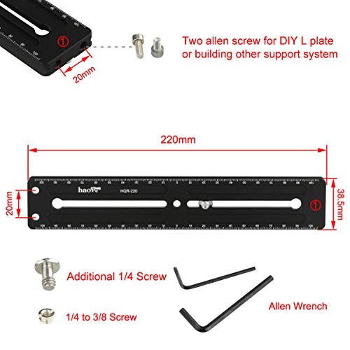 Haoge HQR-220 - Piastra di estensione multiuso, lunga e a sgancio rapido, per treppiedi con testa a sfera, 220 mm, compatibile con Arca Swiss