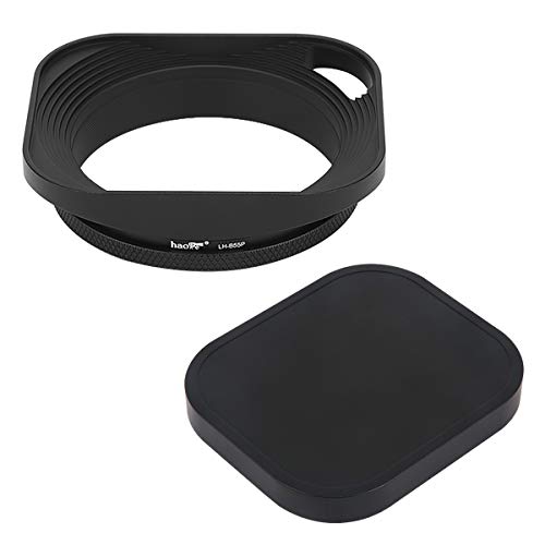 Haoge LH-B55P - Paraluce in metallo quadrato da 55 mm, con tappo in metallo per fotocamera Leica Rangefinder con obiettivo filettato E55 da 55 mm, colore: Nero