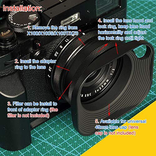 Haoge LH-E3P,Paraluce quadrato in metallo con anello adattatore da 49 mm con tappo in metallo per fotocamera Fujifilm Fuji FinePix X100 X100S X100T X70 X100F X100V sostituisce LH-X100 AR-X100 LH-X70