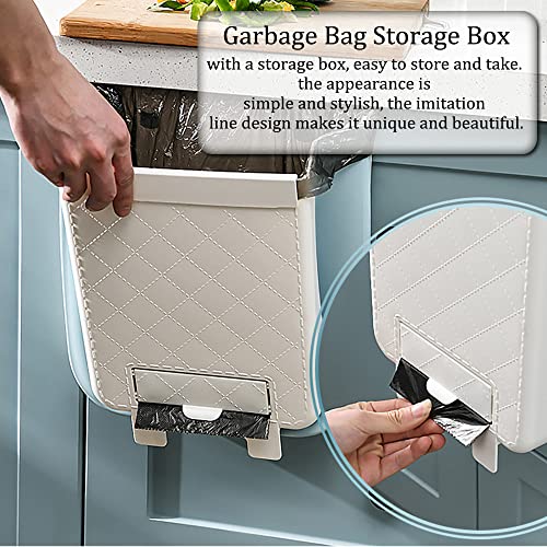 Haoh Pattumiera Pieghevole da Cucina Sospeso a Parete Multifunzione Rifiuti Pattumiera Cestino Organizer con Borse di Immondizia Scatola di Stoccaggio & Gancio (Bianco Blu)