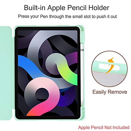 HaoHZ Custodia per iPad Air 4 2020 con Portapenne, Custodia Ultra Sottile Antiurto con Retro Trasparente [Supporta La Ricarica Wireless di Apple Pencil di Seconda Generazione],Verde