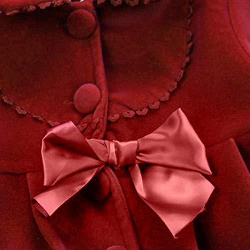 Haokaini Cappotto di lana per bambina da 2 a 7 anni, Rosso, 2-3 Anni